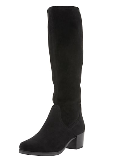 Knee high boots with elasticated inserts