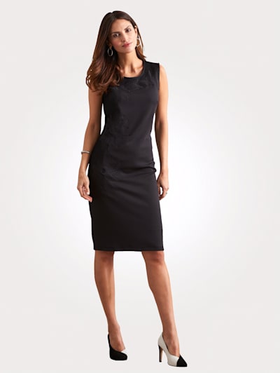 Jersey dress with embroidery and mesh trim