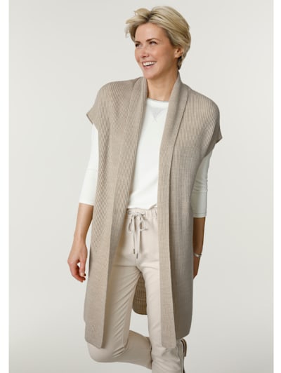 A mixture of shorter and longer-length knitwear will work both indoors and outdoors. Long knitted cardigans, sweaters and jackets make handy alternatives to a coat or jacket and win out for their comfort and more flexible style.